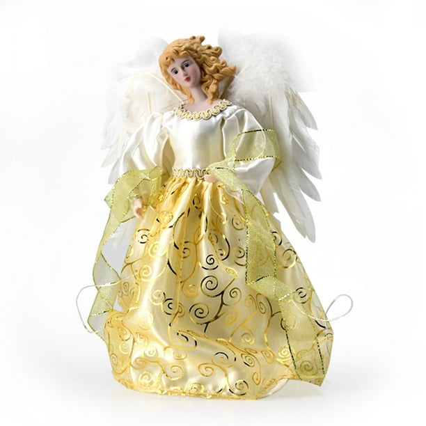 Christmas Tree Angel Topper Decroations Lighted Led Light And Remote Control Timer 12 Inch Sequin Embroidery Angel Treetop For Holiday Ornament Beige Gold Walmart Com